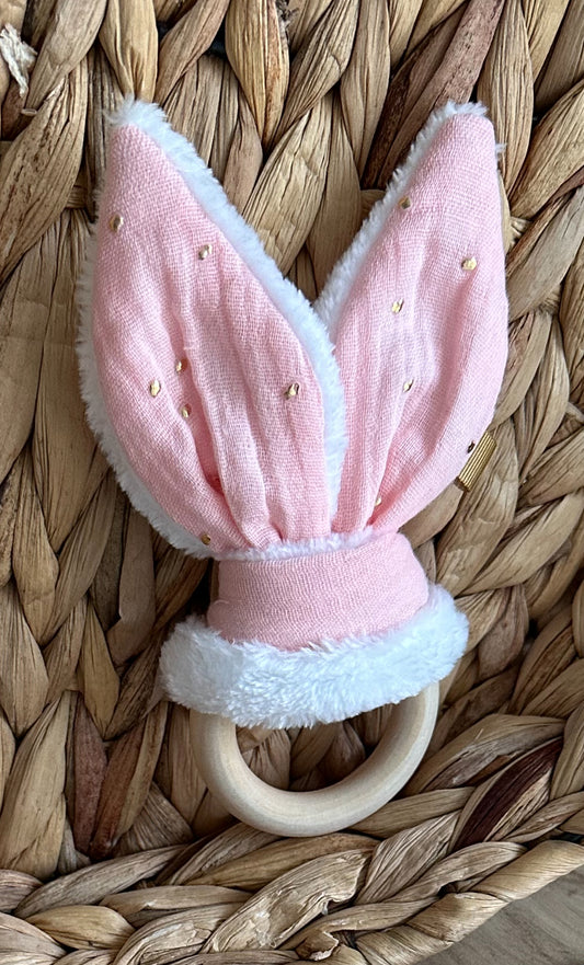 Hochet de dentition Gaze de coton à pois doré 12 coloris