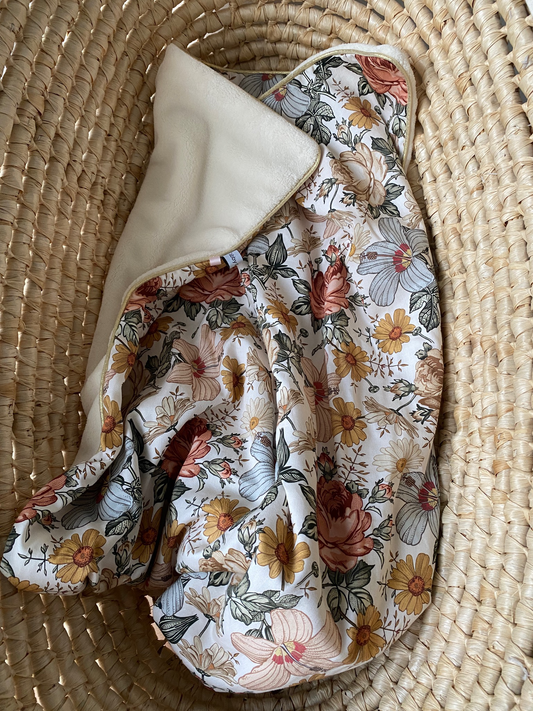 Couverture bébé bi-face fleurs vintage finition Lurex