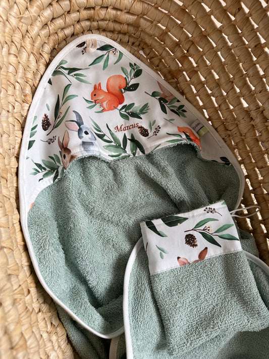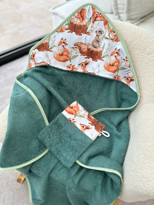Cape de bain et gant Animaux