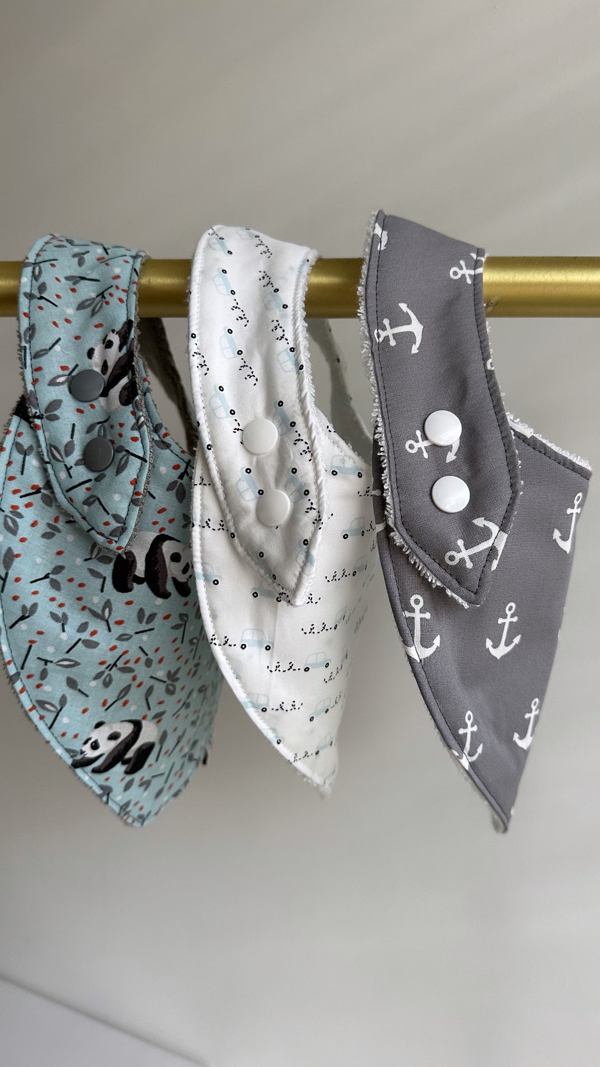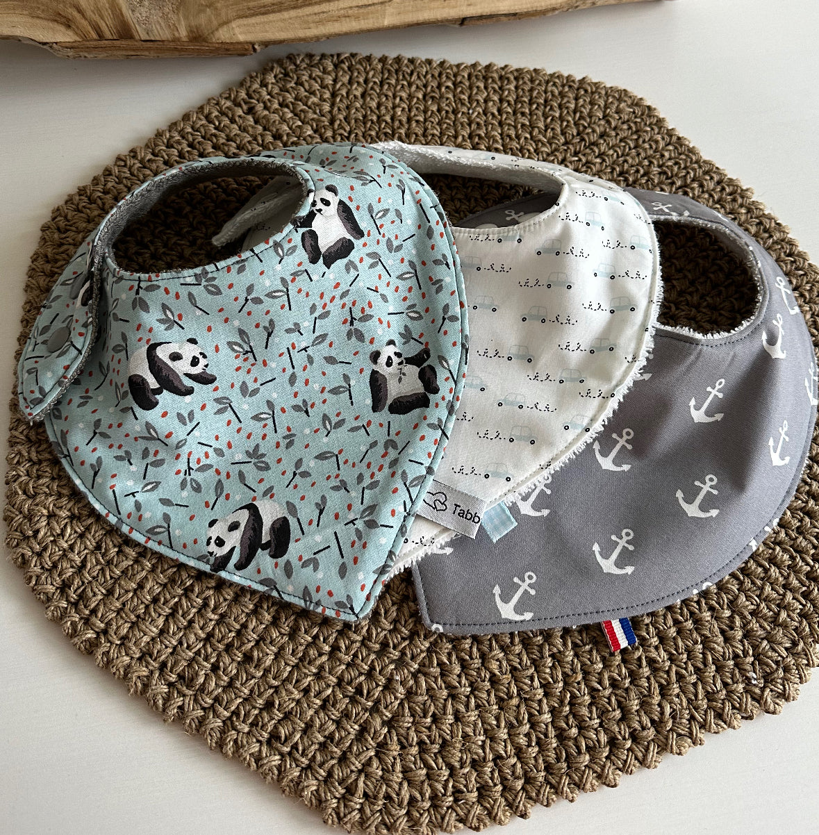 Confectionnées avec soin , ces trois bavoirs seront pratiques et élégants. Ils accompagneront les repas de votre tout-petit tout en douceur.